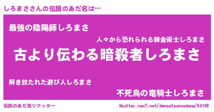 | 胡散臭い通販商品みたいなあだ名 | 『来世でも幸せになれる健康食品…その名も「しろまさ」』 |