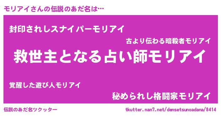 | 男性向けラノベタイトル風あだ名 | 『ノーゲーム・ノーモリアイ』 |