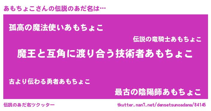 | 女子向けラノベタイトル風あだ名 | 『あもちょこ恋絵巻』 |