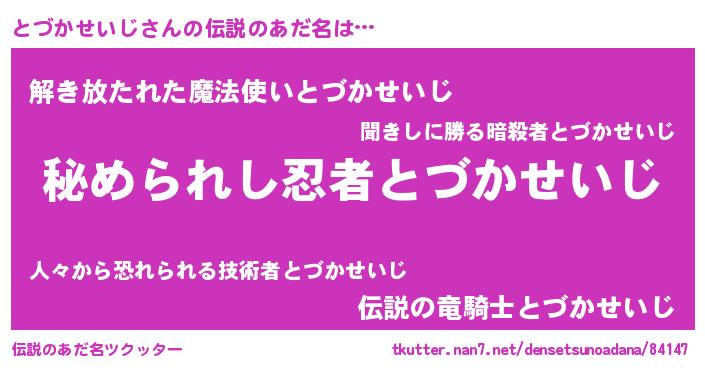 | 意味不明あだ名 | 『とづかせいじフォーエバー』 |