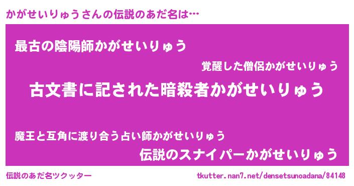 | 意味不明あだ名 | 『永久保存かがせいりゅう』 |