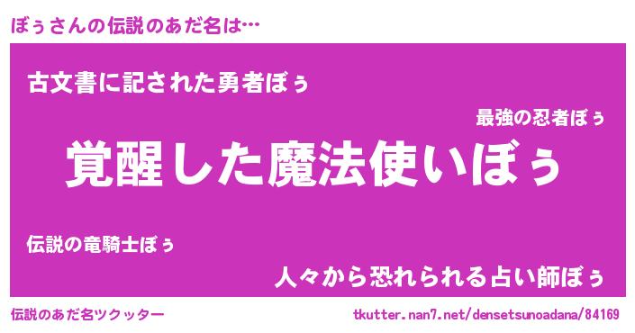 | ヒーロー風カッコイイあだ名 | 『天弓騎士ボゥ』『ネオボゥ』 |