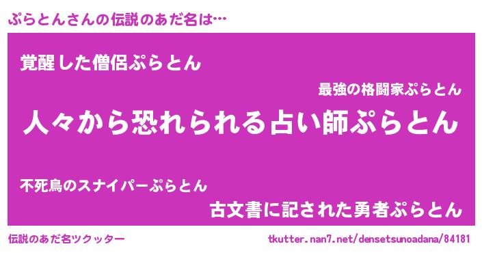 | 意味不明あだ名 | 『めかぶ科ぷらとん属』 |