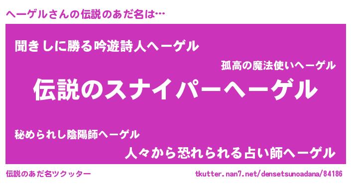 | ヒーロー風カッコイイあだ名 | 『スーパーヘーゲル』『ネオヘーゲル』 |