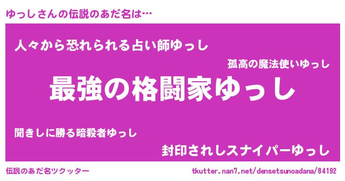| 男性向けラノベタイトル風あだ名 | 『ゆっし~年齢イコール彼女いない歴の魔法使い~』 |