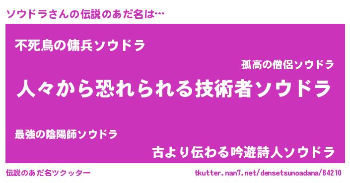 | ヒーロー風カッコイイあだ名 | 『正義の使者ソウドラ』『仮面ソウダー』 |