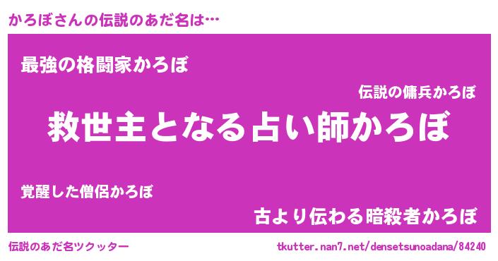 | ヒーロー風カッコイイあだ名 | 『究極戦士カロボ』『天空の使者かろぼ』 |