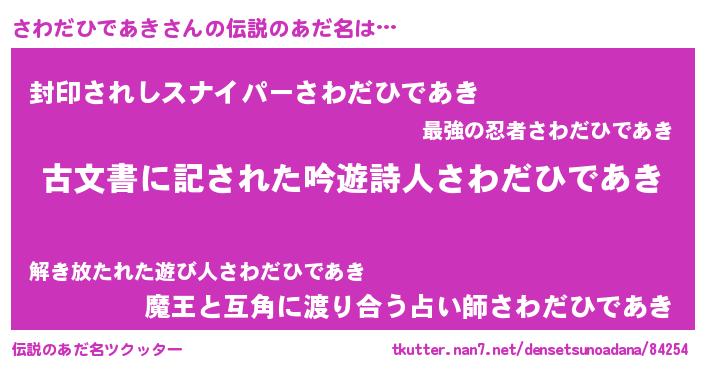 | 意味不明あだ名 | 『住所不定無職さわだひであき(11歳)』 |
