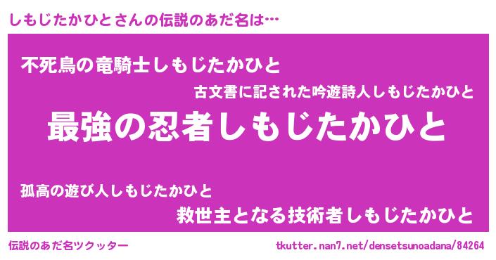 | 意味不明あだ名 | 『自称しもじたかひと』 |