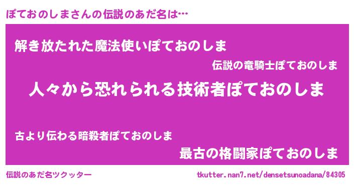 | ヒーロー風カッコイイあだ名 | 『仮面ポテダー』『愛の使者ぽておのしま』 |