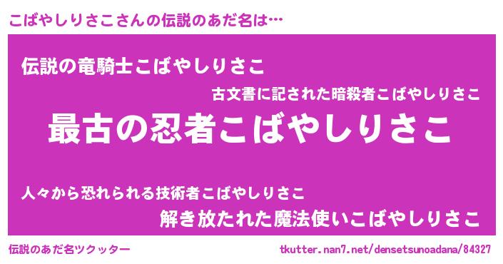 | 男性向けラノベタイトル風あだ名 | 『この素晴らしい世界にこばやしりさこを!』 |