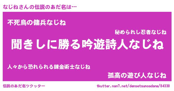 | 男性向けラノベタイトル風あだ名 | 『なじねという概念が存在しない退屈な世界 』 |