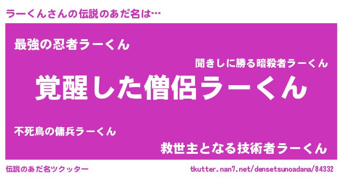 | ヒーロー風カッコイイあだ名 | 『炎刃騎士ラー』『ウルトララーくんマン』 |