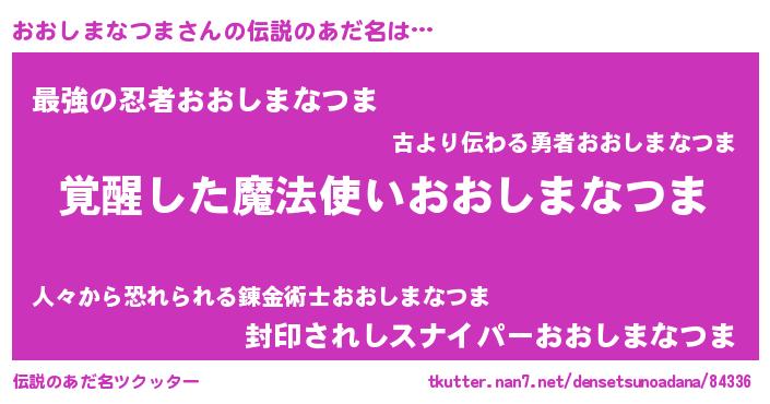 | 意味不明あだ名 | 『とにかく怪しいおおしまなつま』 |