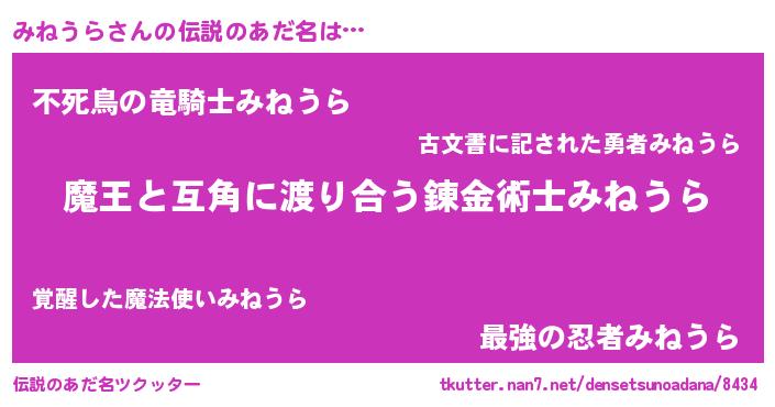 | 男性向けラノベタイトル風あだ名 | 『転生したらみねうらだった件』 |