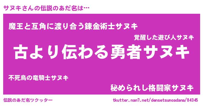 | 女子向けラノベタイトル風あだ名 | 『闇のサヌキ』『サヌキ恋絵巻』 |