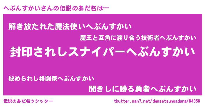 | 胡散臭い通販商品みたいなあだ名 | 『億万長者になれる霊験あらたかなお札…その名も「へぶんすかい」』 |
