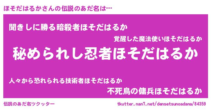 | 意味不明あだ名 | 『住所不定無職ほそだはるか(65歳)』 |