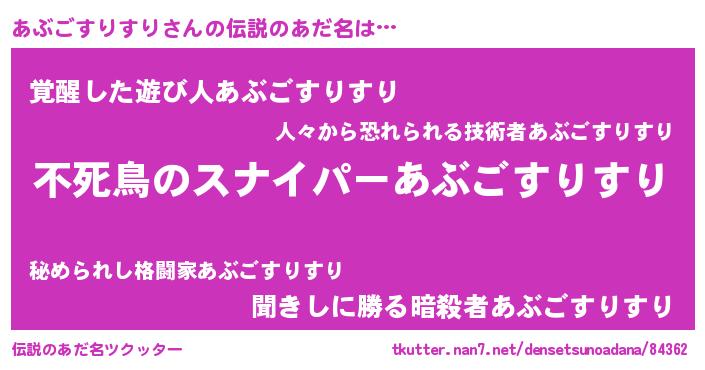 | 男性向けラノベタイトル風あだ名 | 『この素晴らしい世界にあぶごすりすりを!』 |