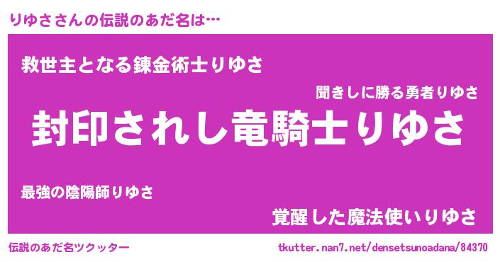 | 男性向けラノベタイトル風あだ名 | 『うちのりゆさが世界を掌握している!』 |