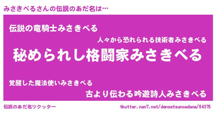 | ヒーロー風カッコイイあだ名 | 『仮面ミサダー』『スーパーミサキベル』 |