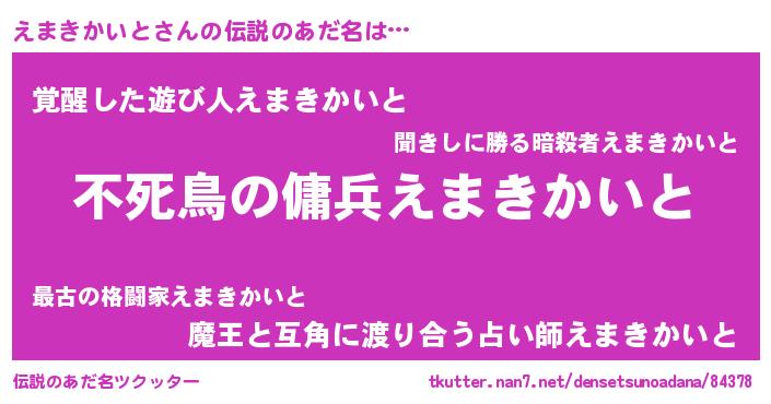 | 意味不明あだ名 | 『住所不定無職えまきかいと(47歳)』 |