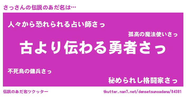 | ヒーロー風カッコイイあだ名 | 『ネオサッ』『友情の使者さっ』 |