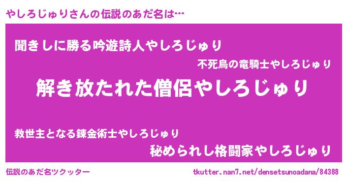 | 意味不明あだ名 | 『住所不定無職やしろじゅり(62歳)』 |