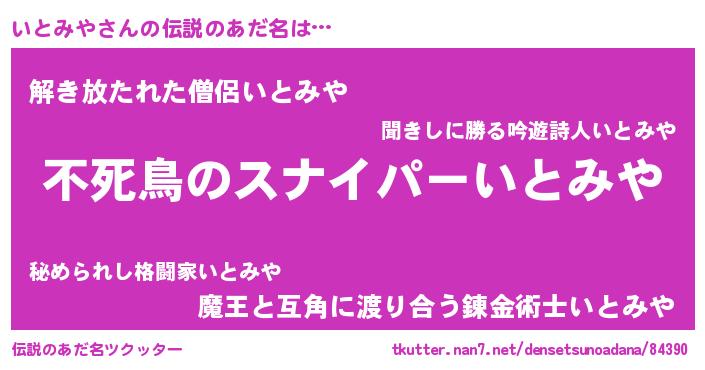 | ヒーロー風カッコイイあだ名 | 『スーパーイトミヤ』『幻影騎士イト』 |