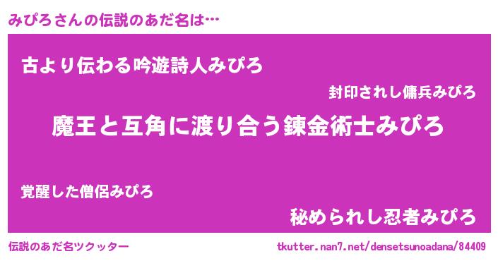 | ヒーロー風カッコイイあだ名 | 『愛の使者みぴろ』『ネオミピロ』 |