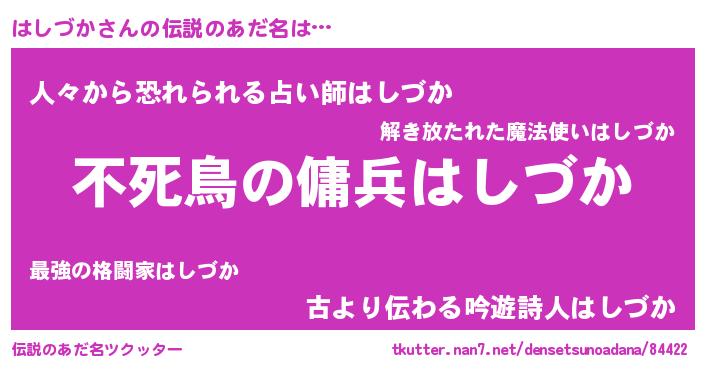 | 意味不明あだ名 | 『もやし科はしづか属』『自称はしづか』 |