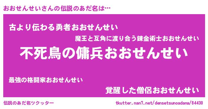 | 意味不明あだ名 | 『自称おおせんせい』 |