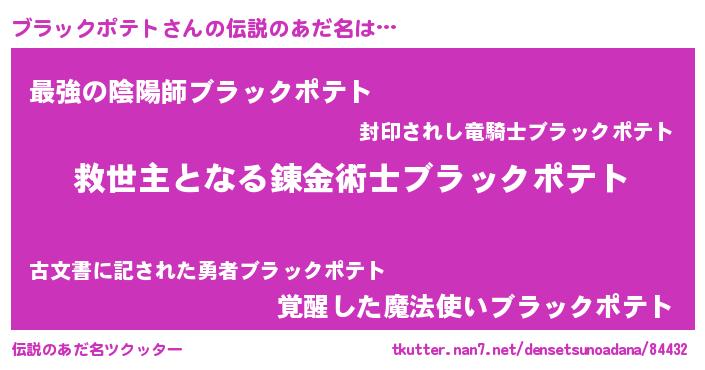 | 男性向けラノベタイトル風あだ名 | 『この素晴らしい世界にブラックポテトを!』 |