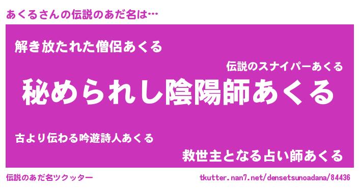 | 意味不明あだ名 | 『住所不定無職あくる(93歳)』『自称あくる』 |