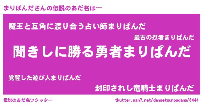 | 胡散臭い通販商品みたいなあだ名 | 『絶対に幸福をもたらす水素水…その名も「まりぱんだ」』 |