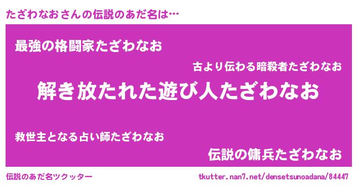 | 女子向けラノベタイトル風あだ名 | 『たざわなおの卵を拾いまして』 |