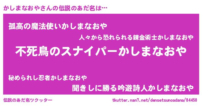 | 意味不明あだ名 | 『自称かしまなおや』 |
