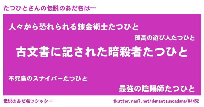 | 意味不明あだ名 | 『永久保存たつひと』『自称たつひと』 |