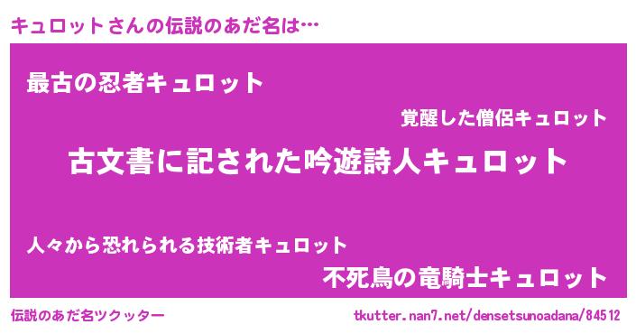 | 意味不明あだ名 | 『永久保存キュロット』『自称キュロット』 |