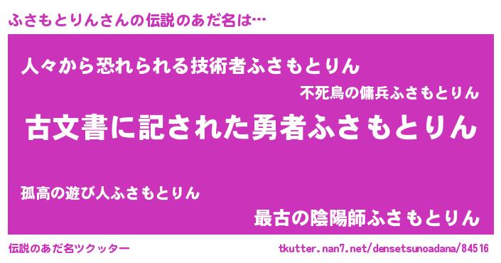 | ヘコむあだ名 | 『ふさもとりん(遠い目)』『牛乳』 |