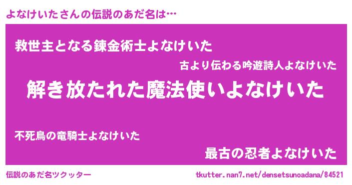 | 胡散臭い通販商品みたいなあだ名 | 『伝統あるサプリメント…その名も「よなけいた」』 |