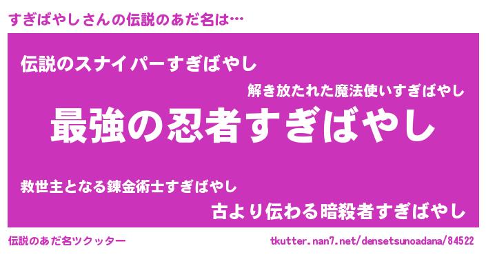 | ファンタジー風あだ名 | 『エターナルスギバヤシー』『スギフェル』 |
