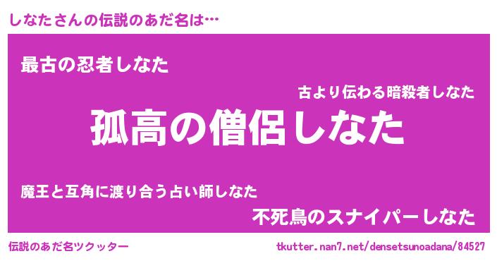 | ヒーロー風カッコイイあだ名 | 『ウルトラ戦士シナタ』『幻影騎士シナ』 |