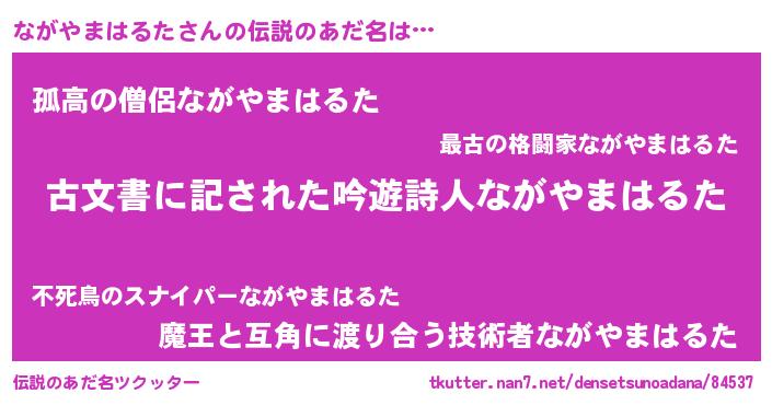 | 意味不明あだ名 | 『住所不定無職ながやまはるた(7歳)』 |