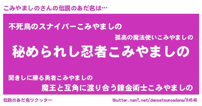 | 意味不明あだ名 | 『こみやましのフォーエバー』 |