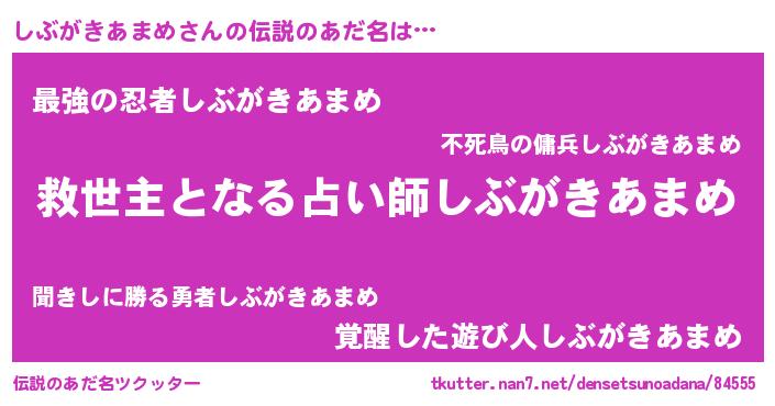 | ヒーロー風カッコイイあだ名 | 『慈愛の使者しぶがきあまめ』 |