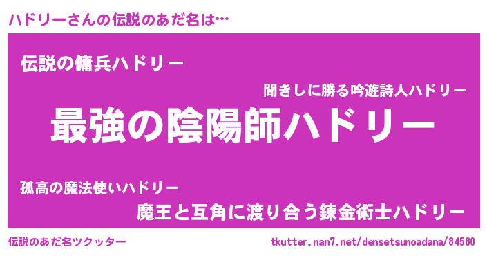 | ヒーロー風カッコイイあだ名 | 『最強戦士ハドリー』『仮面ハドダー』 |