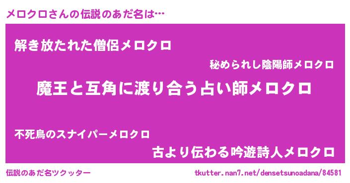 | ヒーロー風カッコイイあだ名 | 『愛の使者メロクロ』『銀牙騎士メロ』 |