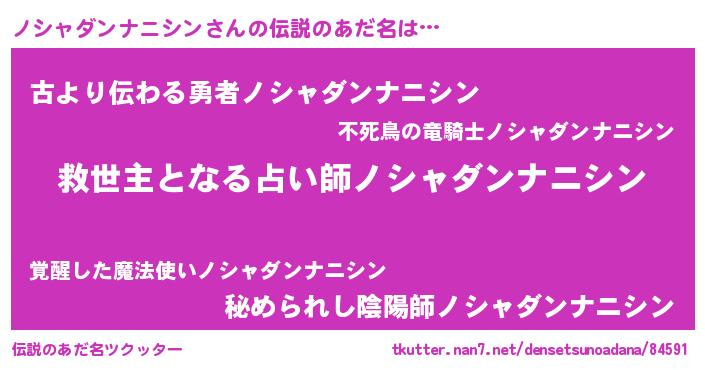 | 意味不明あだ名 | 『住所不定無職ノシャダンナニシン(47歳)』 |