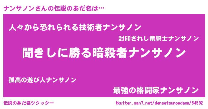 | 意味不明あだ名 | 『永久保存ナンサノン』『自称ナンサノン』 |